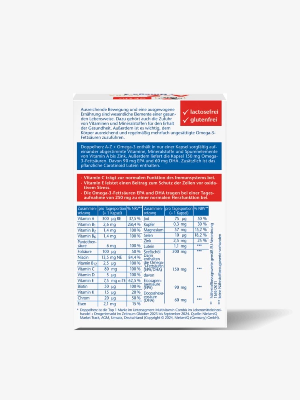 A-Z + Omega-3 Extra je komplexní doplněk stravy navržený tak, aby poskytoval tělu důležité vitamíny, minerály, stopové prvky, lutein a omega-3 mastné kyseliny. Tento produkt je ideální pro každodenní podporu zdraví, tělesné i duševní pohody a je vhodný pro ženy i muže.
