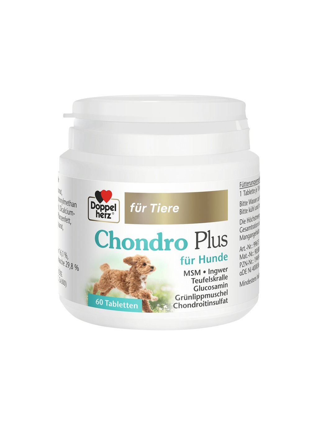 I když tablety Doppelherz Chondro Plus pro psy chutnají stejně lahodně jako pamlsek, jedná se o doplňkové krmivo se smysluplným složením. Vysoce kvalitní ingredience jsou přesně dávkovány a měly by být podávány v doporučených množstvích. Tímto jednoduchým způsobem podpoříte zdraví svého psa.